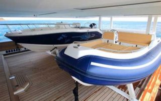 Cklass also offers a huge 80 square meter tender deck which – when clear of her tenders and other toys – doubles as a “beach club” lounge area with fold-out water-level side terraces.