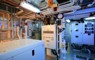 Just completed in mid-2015, she includes a complete complement of brand new, state of the art equipment including TRAC Zero-Speed stabilisers, bow and stern thrusters, new power generation systems, a complete Furuno and Sperry nav/com package, a custom engineered wet exhaust system, four-deck elevator and much more.